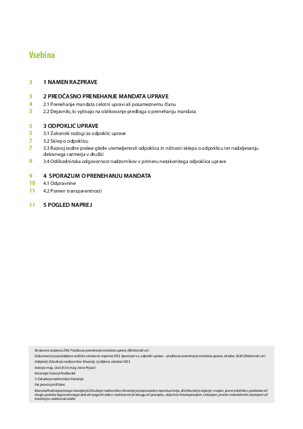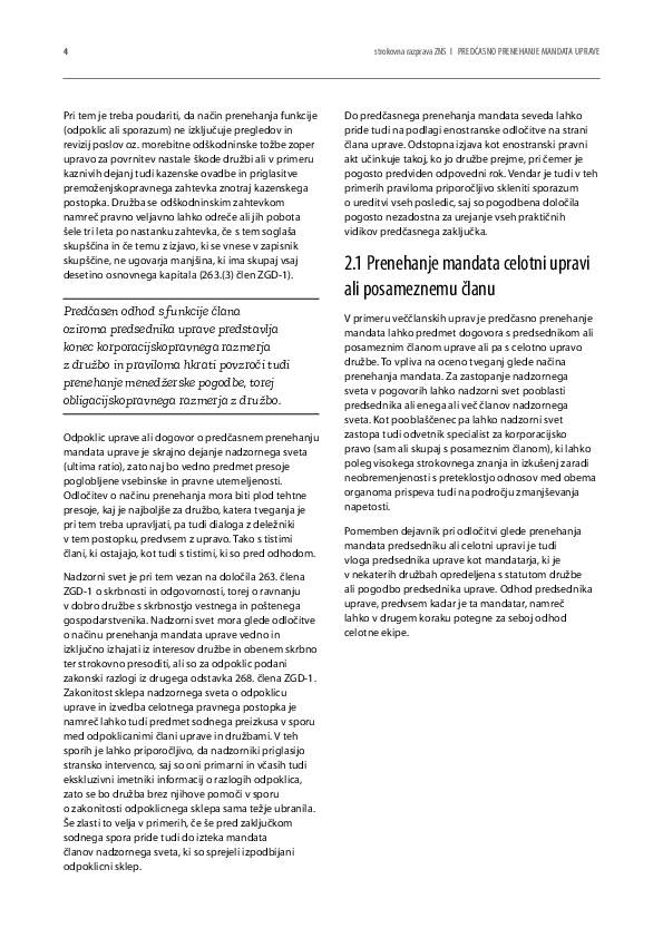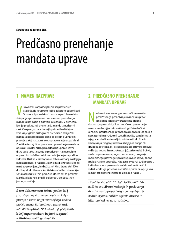 V slovenski korporacijski praksi prevladuje stališče, da je upravo težko zakonito odpoklicati. V javnosti pa se hkrati pogosto problematizira sklepanje sporazumov o predčasnem prenehanju mandata kot način dogovora o razhodu v primerih, kjer je predlagatelj prenehanja mandata nadzorni svet. V ospredju sta v slednjih primerih običajno vprašanje glede razlogov za predčasen zaključek mandata posameznega člana ali celotne uprave in presoja, zakaj nadzorni svet uprave ni raje odpoklical. Zlasti kadar naj bi za predčasno prenehanje mandata obstajali krivdni razlogi za odpoklic uprave. Javni diskurz se takrat navezuje predvsem na morebitno odpravnino in/ali morebitno nadaljevanje zaposlitve v družbi. Razlike v dostopnosti teh informacij nastajajo med zasebnimi družbami, kjer je ta diskretnost več ali manj zagotovljena, in družbami, ki so javne delniške družbe, ali družbami s kapitalsko naložbo države, kjer so ta razkritja v letnih poročilih družb oz. so predmet razkritja skladno s pravili o dostopu do podatkov javnega značaja