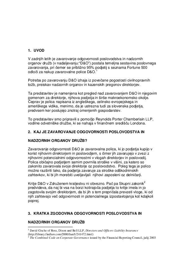 Ta predstavitev je namenjena kot pregled nad zavarovanjem D&O in njegovim pomenom za direktorje, njihova podjetja in širše makroekonomsko okolje.
