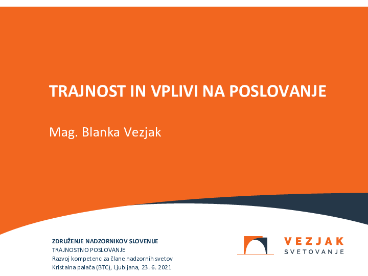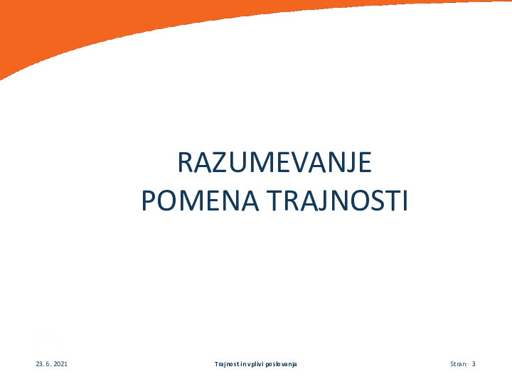 Razumevanje trajnosti, značilnosti trajnostnega poslovanja ter s tem povezana tveganja.