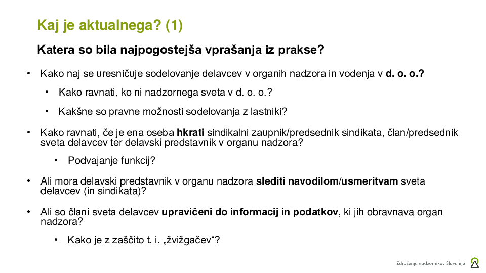 Priporočila dobre prakse sodelovanja delavcev v organu nadzora