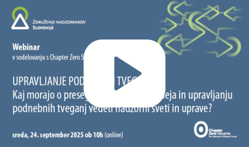 Na webinarju 24. septembra smo v sodelovanju s podnebno pobudo Chapter Zero Slovenia osvetlili, zakaj preseganje planetarnih meja zadeva tudi poslovno prihodnost podjetij in kako lahko nadzorni sveti in uprave pravočasno prepoznajo tveganja ter usmerijo pozornost v dolgoročno odpornost, učinkovitost in konkurenčnost. Podnebne spremembe niso več zgolj okoljsko vprašanje, temveč strateški izziv za gospodarske družbe in njihove organe vodenja in nadzora. Naraščajoče posledice podnebnih sprememb, omejenost naravnih virov in sistemska odvisnost od neučinkovitih modelov rabe materialov in energije že vplivajo na stroške, dobavne verige, poslovne modele in dolgoročno vzdržnost gospodarskih družb. Razumevanje teh izzivov in njihovo upravljanje postajata ključni del odgovornega vodenja.
