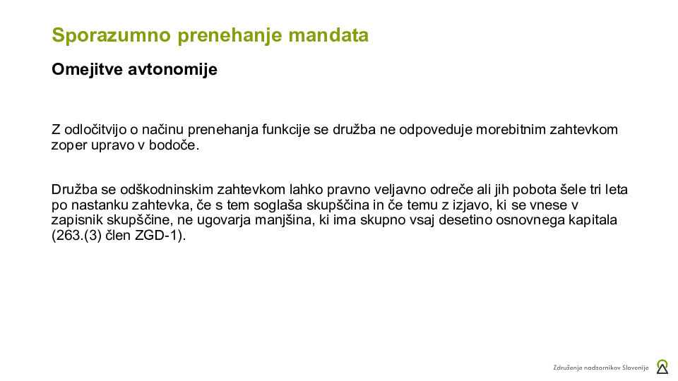 V določenih primerih je sporazum z upravo lahko najboljša rešitev, kar pa še ne pomeni, da se s tem izogne morebitnim posledicam. Nadzorni svet je namreč dolžan izvesti preglede domnevno spornih poslov, ki bremenijo upravo, ter glede na ugotovitve po potrebi sprožiti tudi odškodninske zahtevke.