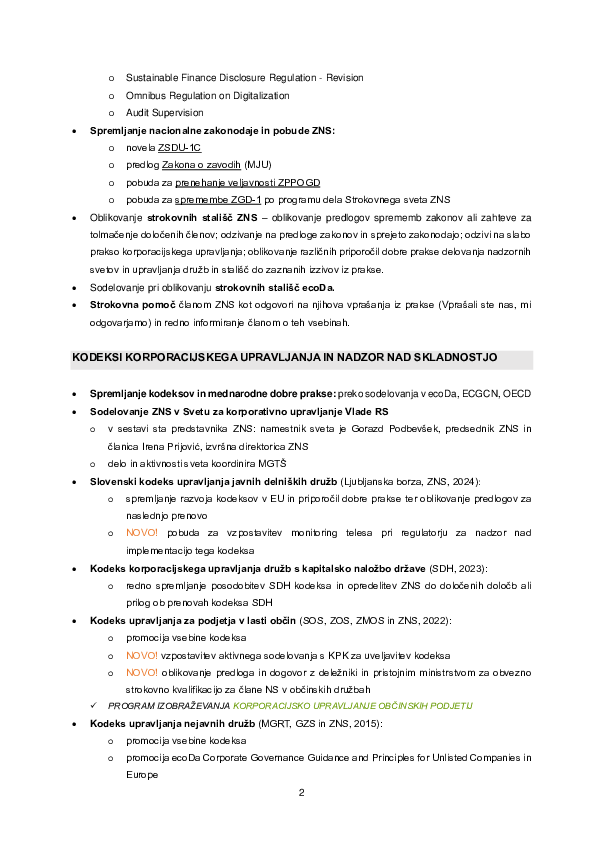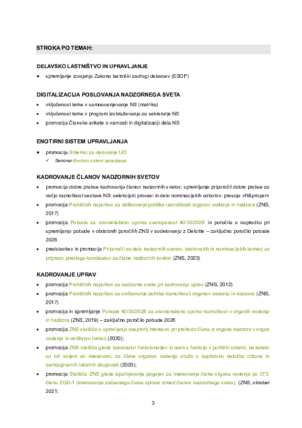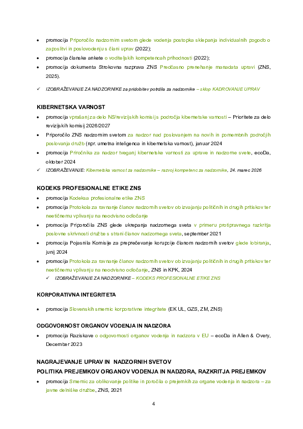 • obveščanje o domačih in mednarodnih novostih, strokovnih stališčih ZNS, odprtih javnih pozivih za članstvo v nadzornih svetih ali komisijah,